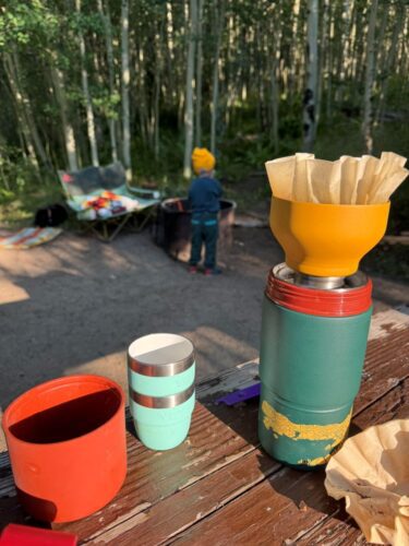 Whether we’re brewing coffee at a trailhead, mixing an old fashioned under the stars, or just packing hot cocoa for West’s morning hike, this flask delivers.